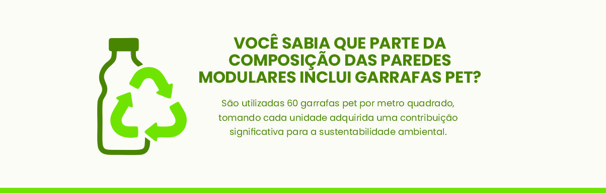 Sustentabilidade – Cada metro de parede contém 60 garrafas PET recicladas, reduzindo o impacto ambiental e promovendo a reutilização de materiais. Além de serem leves e fáceis de manusear, essas paredes permitem uma montagem rápida e eficiente, sem a necessidade de grandes fundações ou processos complexos de obra.