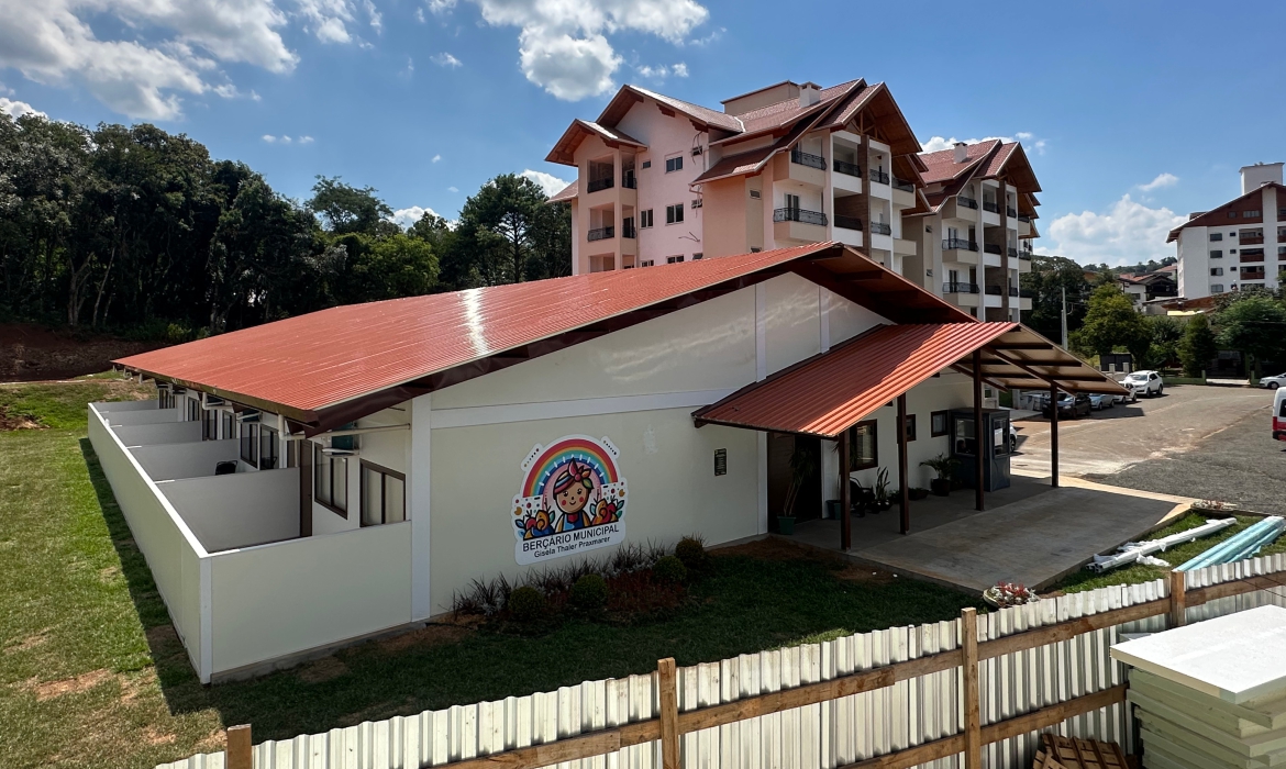 O Berçário Municipal de Treze Tílias foi projetado para oferecer um ambiente seguro e acolhedor para os primeiros anos de vida das crianças. Com 659,20m², a estrutura modular combina conforto, acessibilidade e funcionalidade. A construção foi concluída em 60 dias, evidenciando a eficiência e qualidade do sistema construtivo.