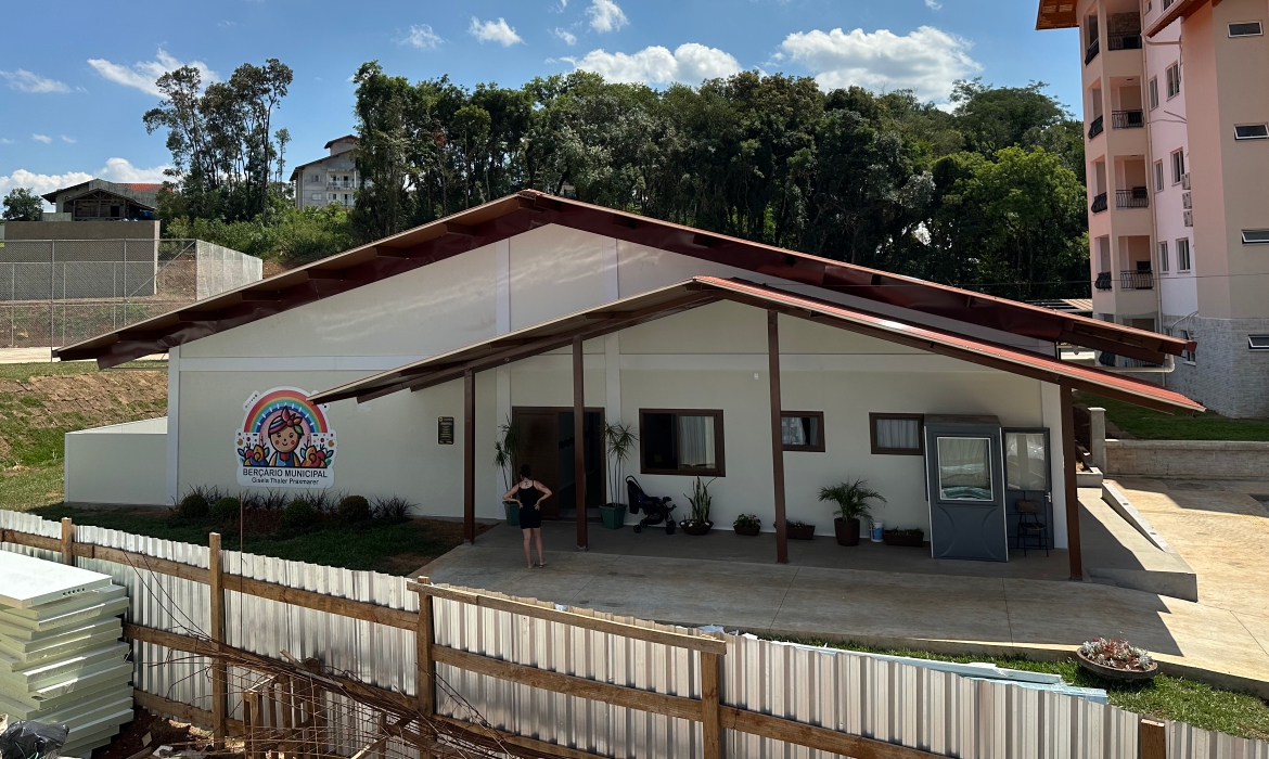 O Berçário Municipal de Treze Tílias foi projetado para oferecer um ambiente seguro e acolhedor para os primeiros anos de vida das crianças. Com 659,20m², a estrutura modular combina conforto, acessibilidade e funcionalidade. A construção foi concluída em 60 dias, evidenciando a eficiência e qualidade do sistema construtivo.